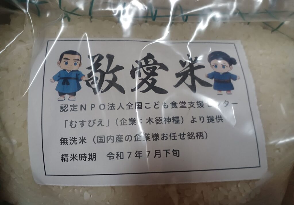 認定NPO法人全国こども食堂支援センターの夏休み特別企画に応募したところ,企業:木徳神糧様よりお米をいただきました。
