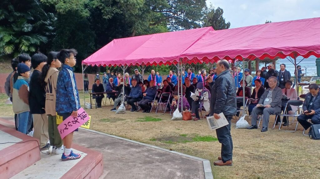 志塾・西郷塾と南洲翁龍愛未来塾合同で,龍郷小学校児童・集落住民との交流会を企画し,西郷小浜公園で開催された。龍郷小児童は,島の文化や自然について発表した後,西郷隆盛公について荘内南洲会に質問して認識を深めた。