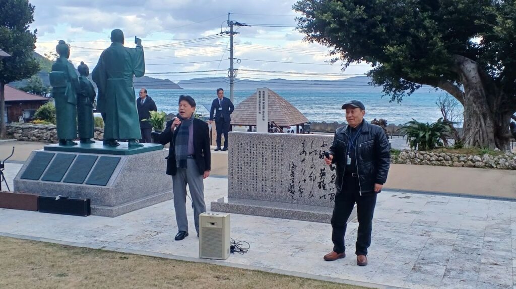 山形県の荘内南洲会の御一行が,西郷隆盛公ゆかりの地を巡る研修旅行で奄美大島を訪問。