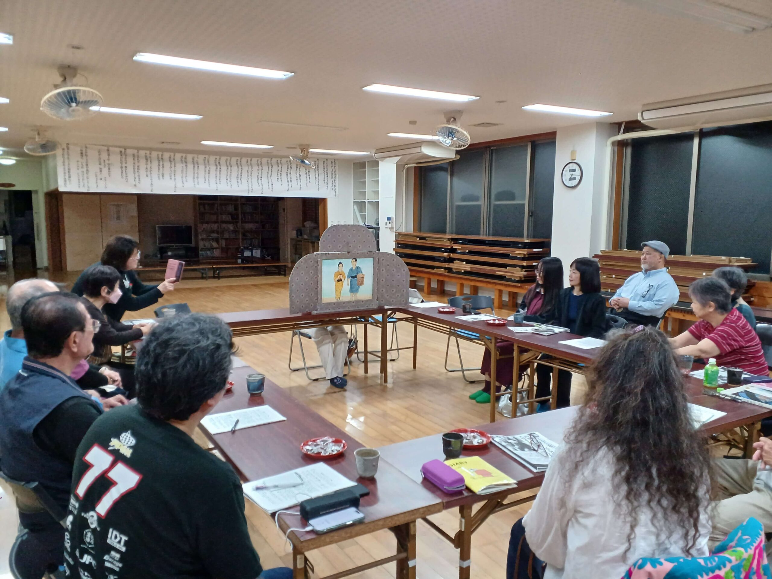 西郷隆盛荒野愛加那さんのことを中心に,奄美の歴史について学習する志塾・西郷塾に参加しています。志塾・西郷塾と連携して,紙芝居の読み聞かせ等,歴史を伝える活動も行っています。写真は,西郷隆盛公と愛加那さんの玄孫(西郷隆子さん)との学習会の様子です。