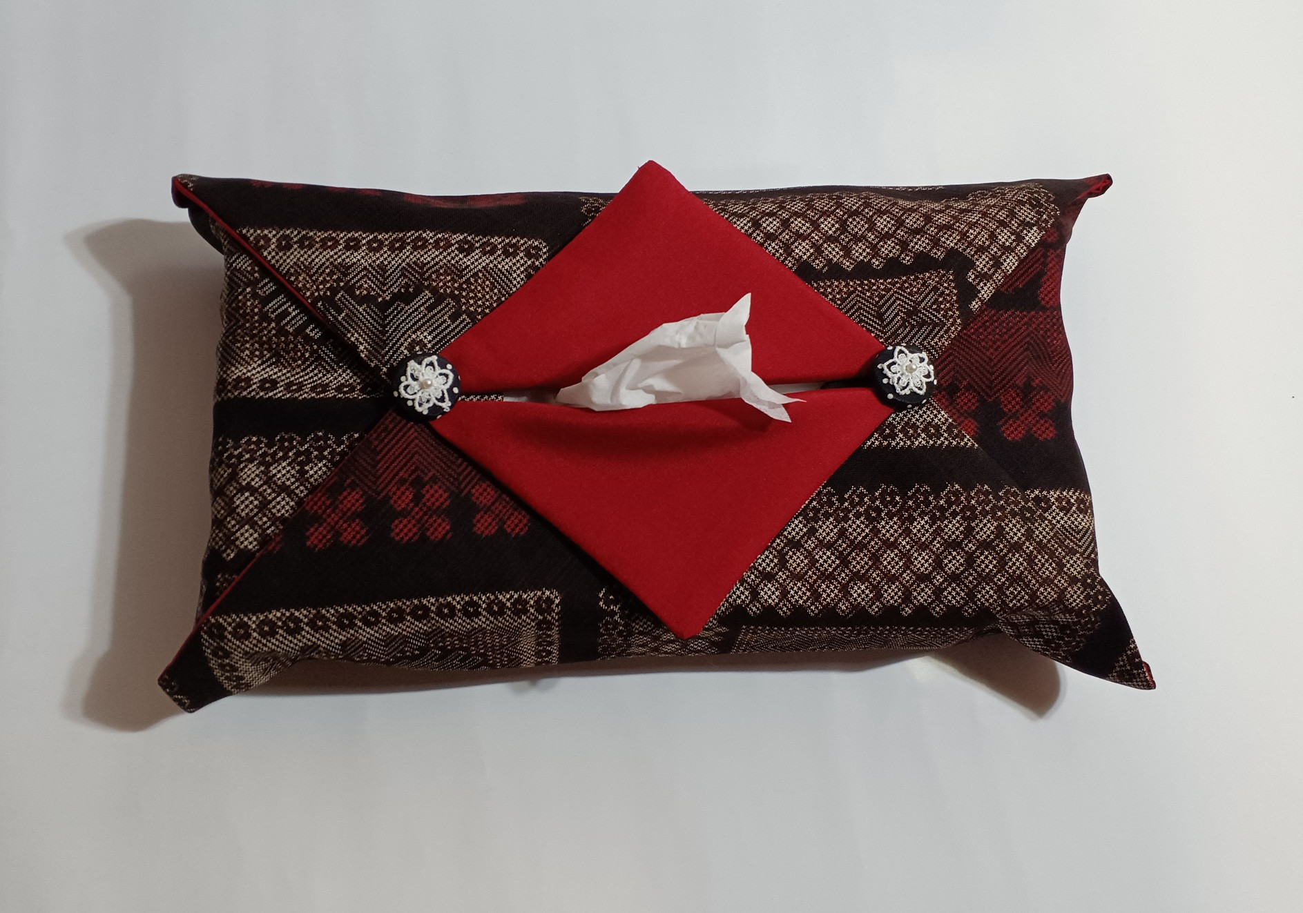 多鶴子さんは,本場奄美大島紬の着物をリメイクして数々の作品を手掛けています。状態の良い着物を厳選し,洗浄から縫製まで一品一品丁寧に手作業で製作しています。その技術は、喜界町からも認められており、喜界町生涯学習講座の指導者もしています。人気の高い多鶴子さんの作品が市場に出回るのは初です。紬(シルク)をまとったティッシュや焼酎・ワインで来客対応なんていかがでしょうか。お部屋に置いて優雅な時間を過ごしてもらってください。小物から洋服まで手掛ける「ぬぬあすび」田中多鶴子さんのコレクションをぜひお買い求めください。